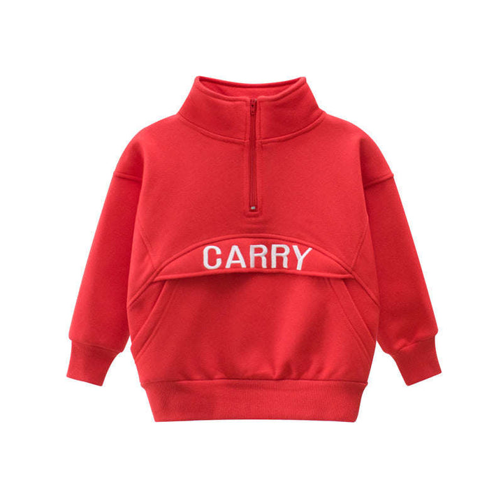 Baby Slogan Embroidered Pattern Solid Color High Neck Hoodie